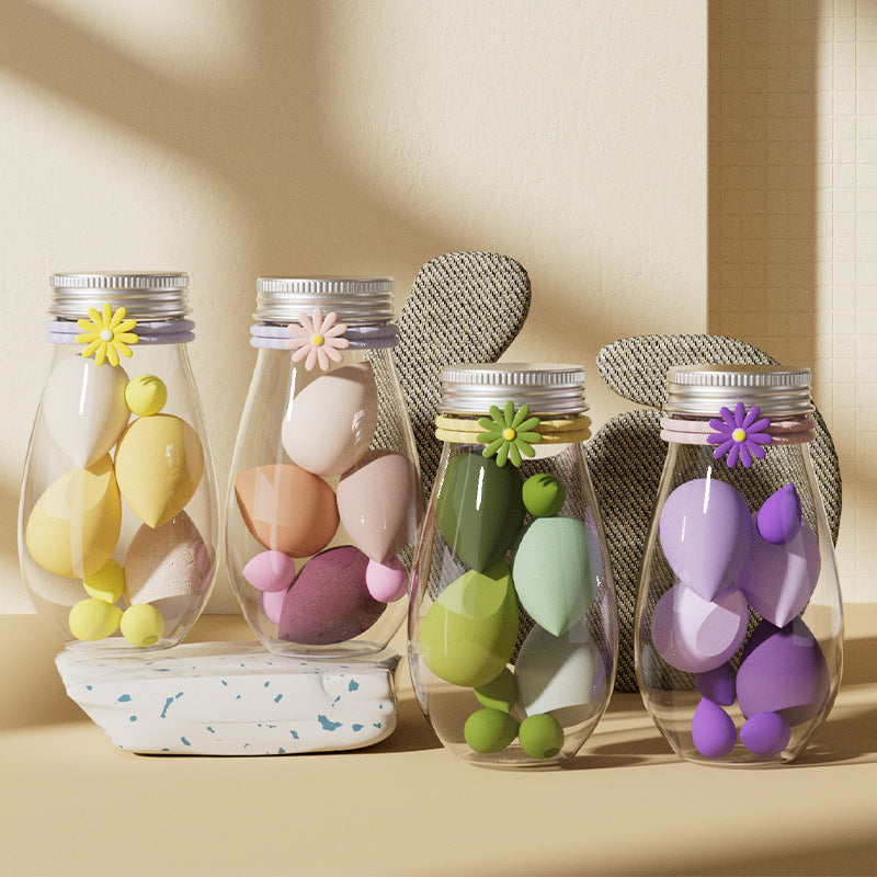 用我们这款多功能四件套美妆蛋升级您的化妆步骤。这款套装专为新手和专业人士设计,包含三种不同形状的美妆蛋,可精准贴合面部每一处轮廓。