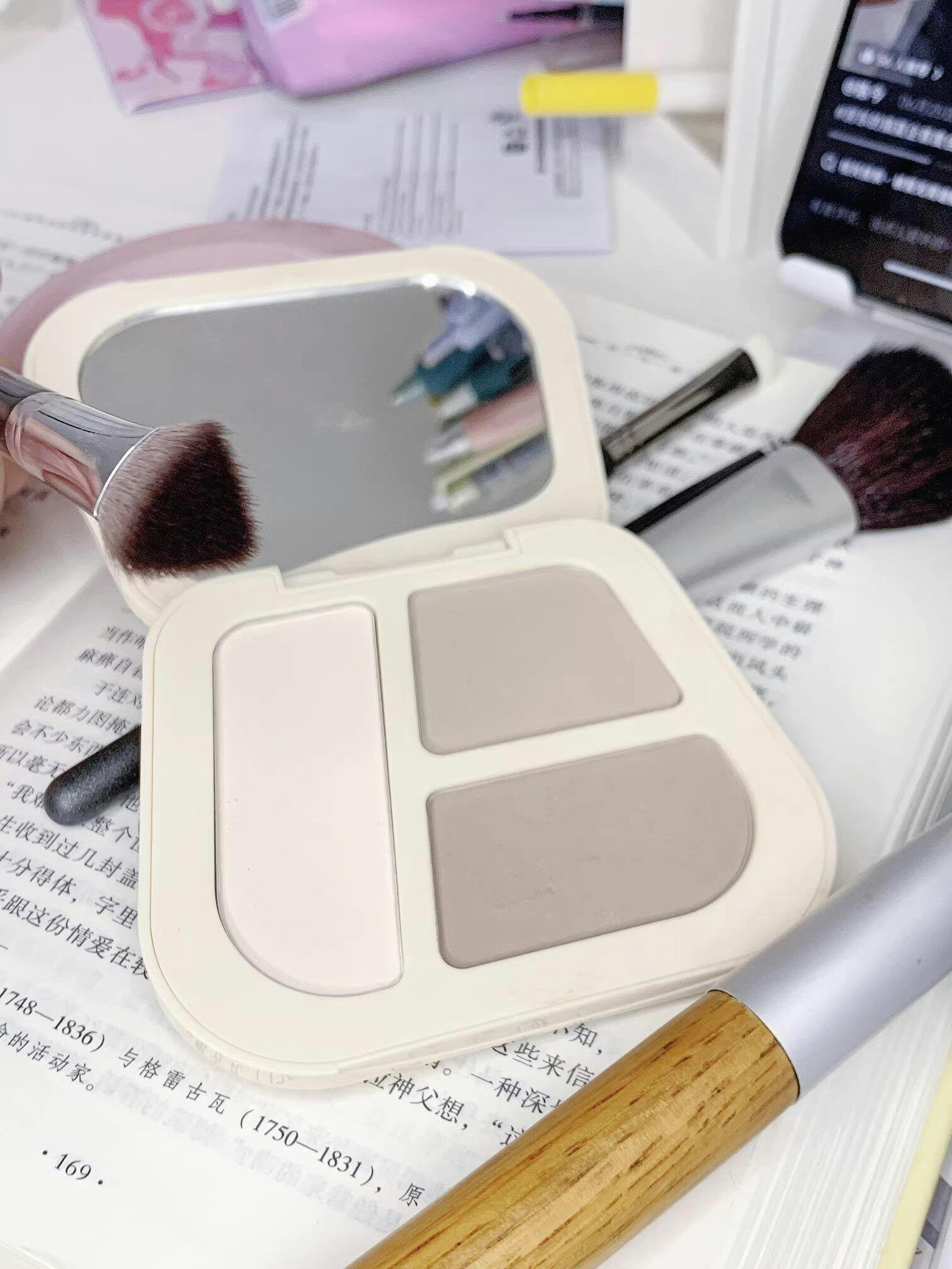 The triangular brush head conforms to the contours of the face, and the matte and highlighting powders blend more naturally.