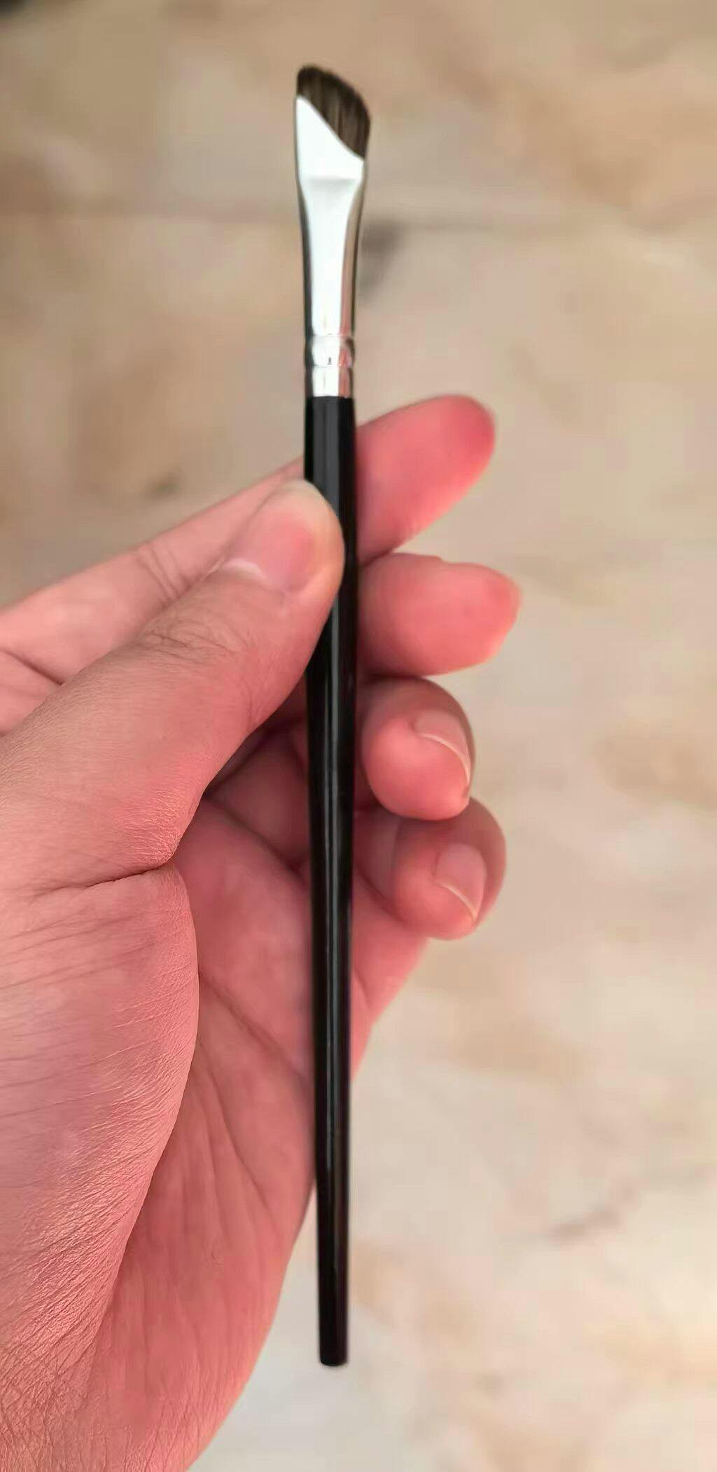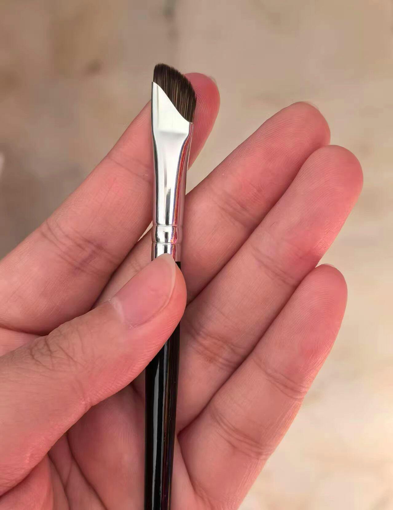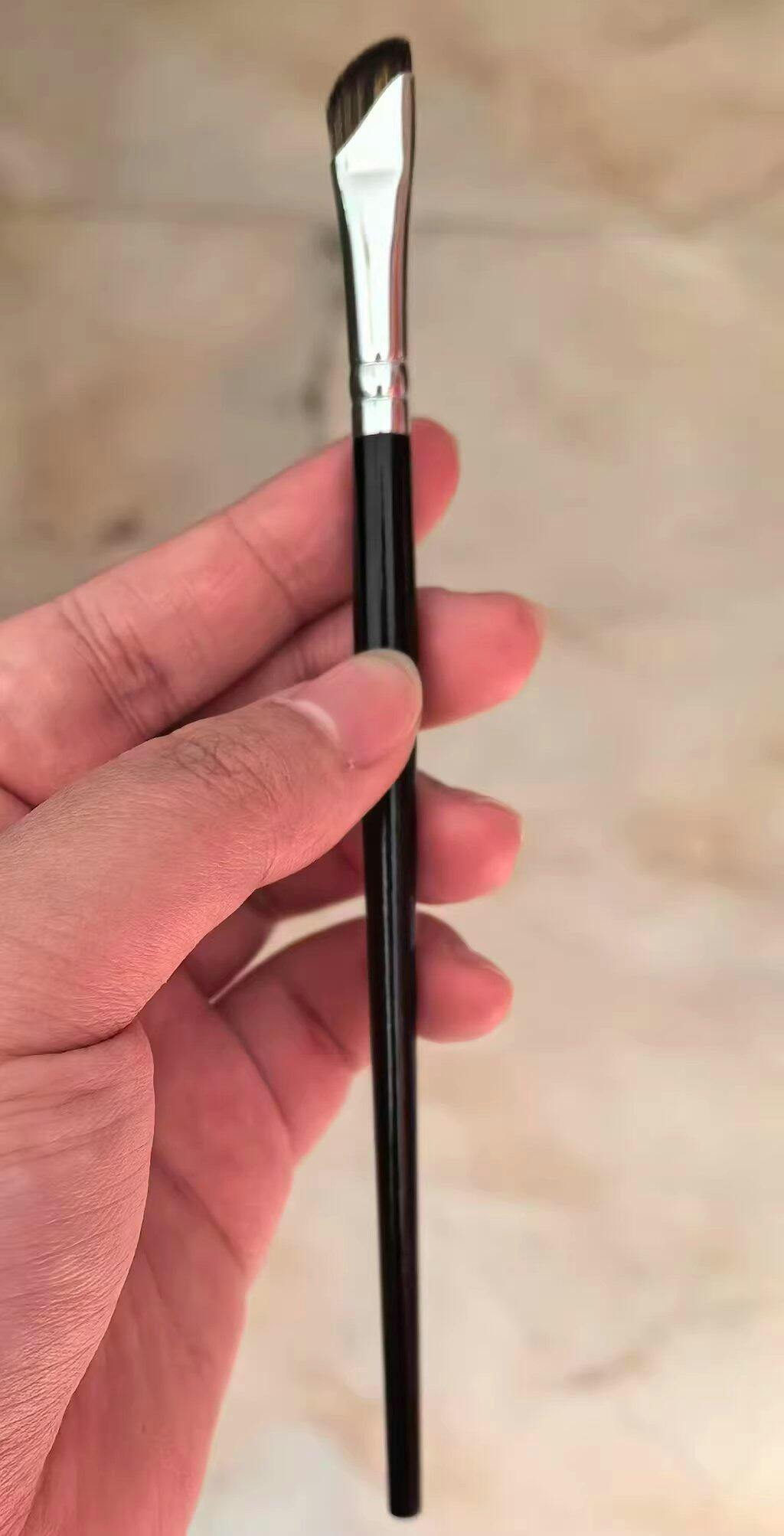 With a slightly slanted triangle cut (not a flat triangle), the brush increases surface coverage while maintaining precision, making it easier to apply and blend product evenly without harsh lines.