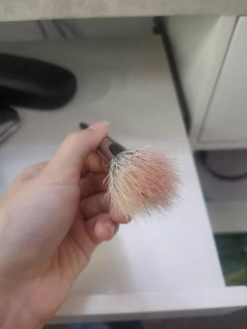 1. Swirl brush gently in your makeup product, tap off excess to avoid over-application.